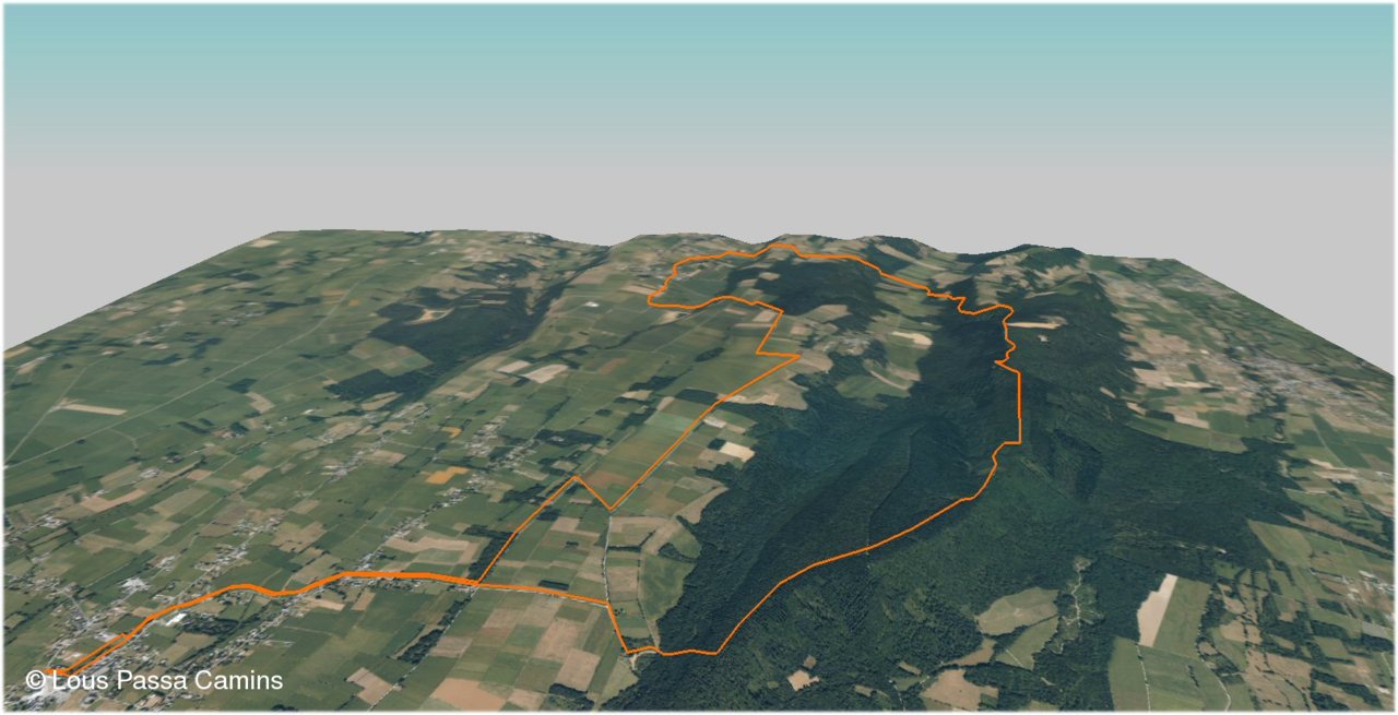 Repérez le Montaigu à G avec sur le devant les crêtes du Cuq Crémail; puis un grand "vallon" enneigé et les crêtes de Barran et l'Oussamiaou; ensuite un autre grand vallon en Y avec presque au centre du dernier plan le Soum de Lascours et sur l'extrémité de la branche D du Y, le Pic de Léviste dans la brume .