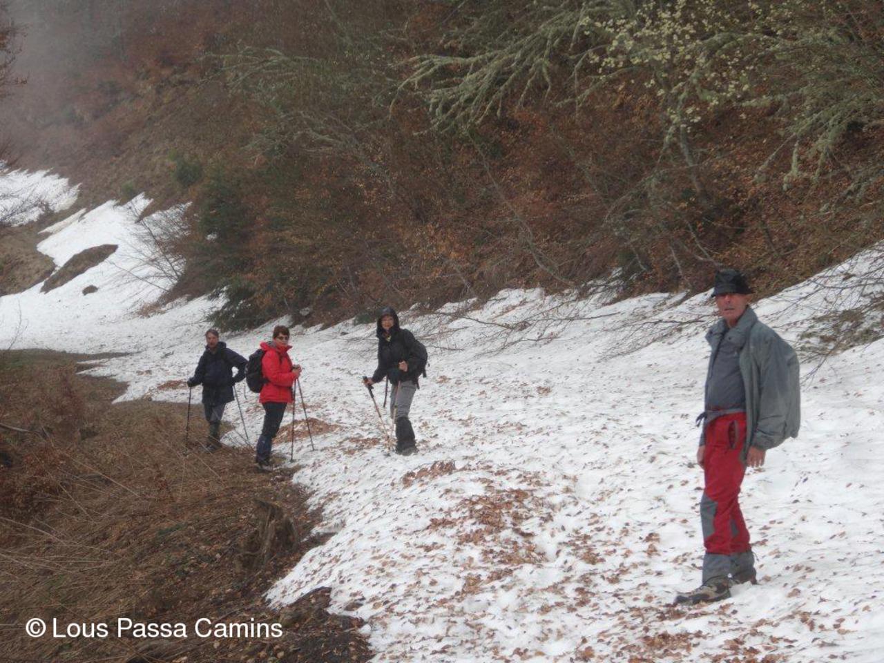 Montée vers le Pouy Droumide dans la neige.