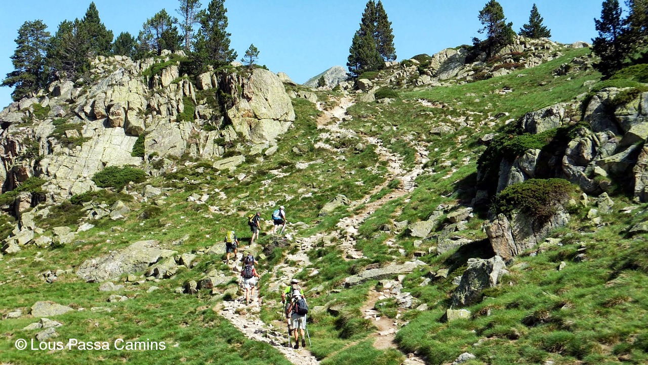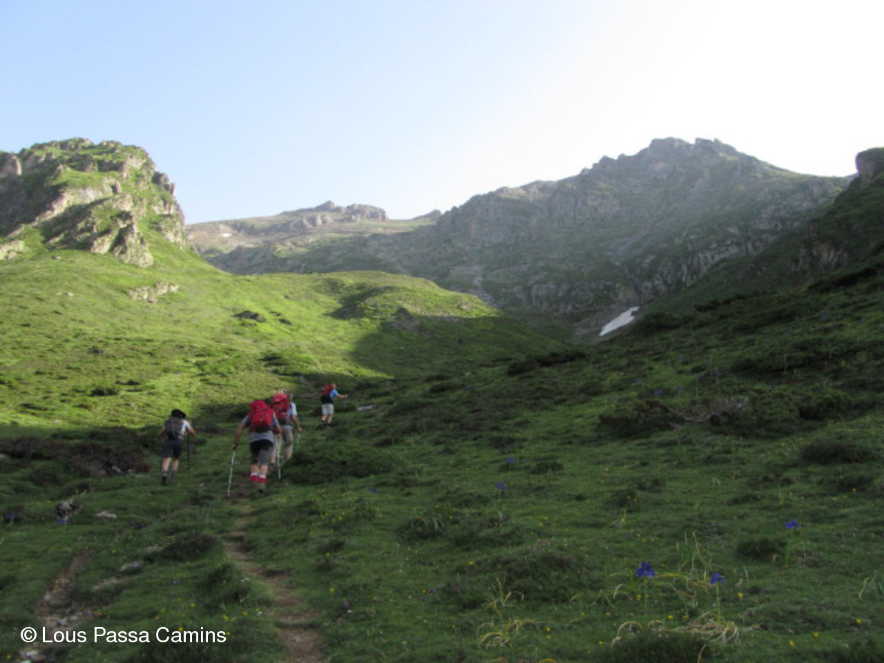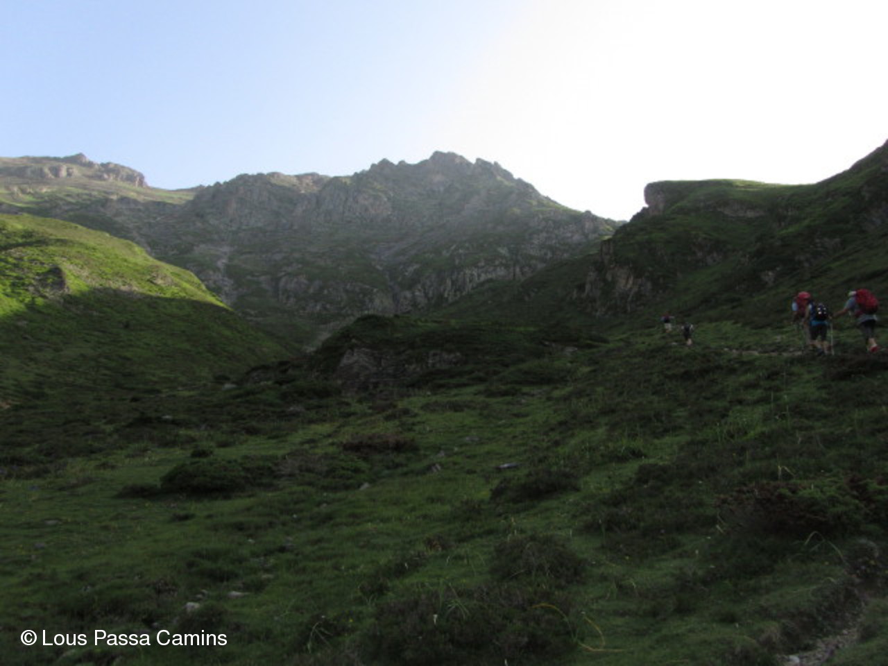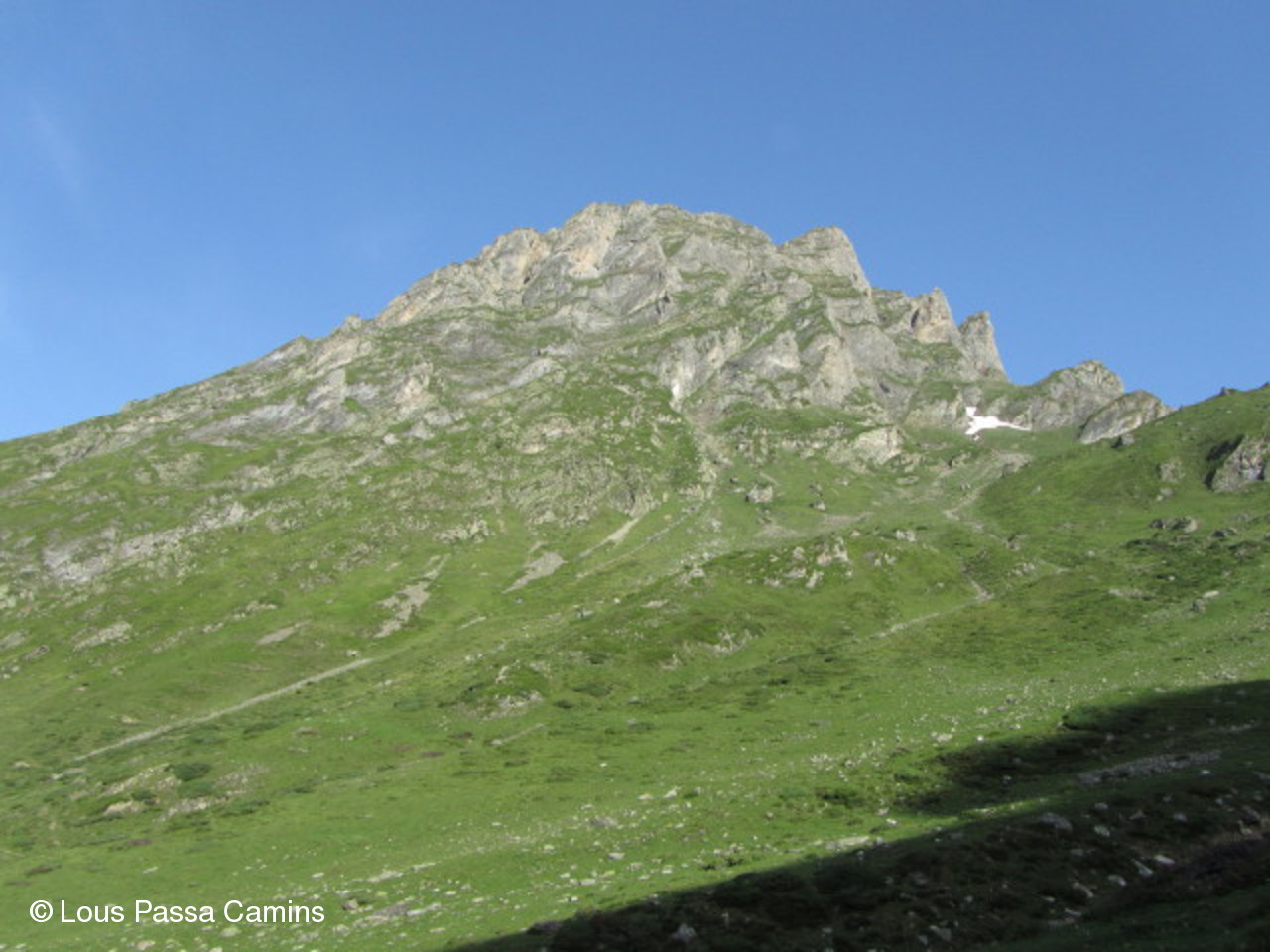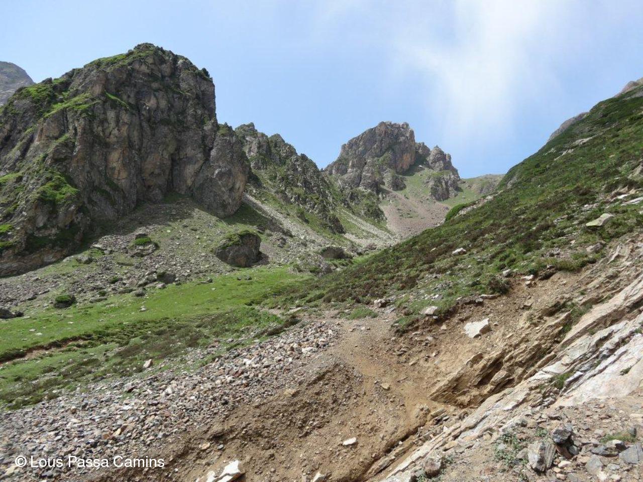 Le sentier du départ : pente gentillette. Le Pic Mail (2621 m) devant nous.