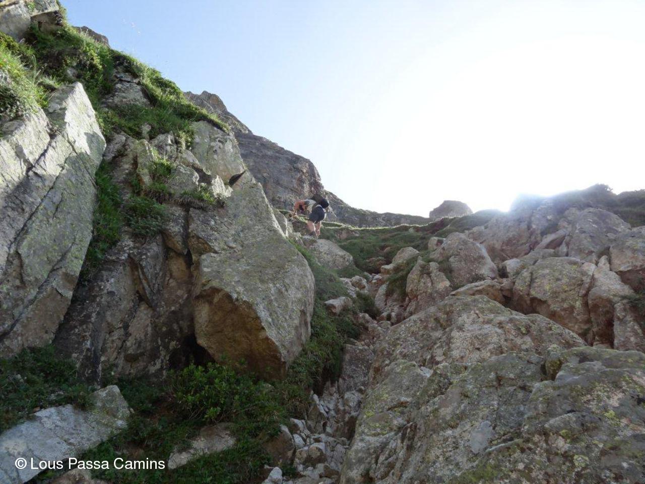 Le panorama vers l'arrière commence à s'élargir. Petit replat au second plan : le col du Portet, départ du G2.