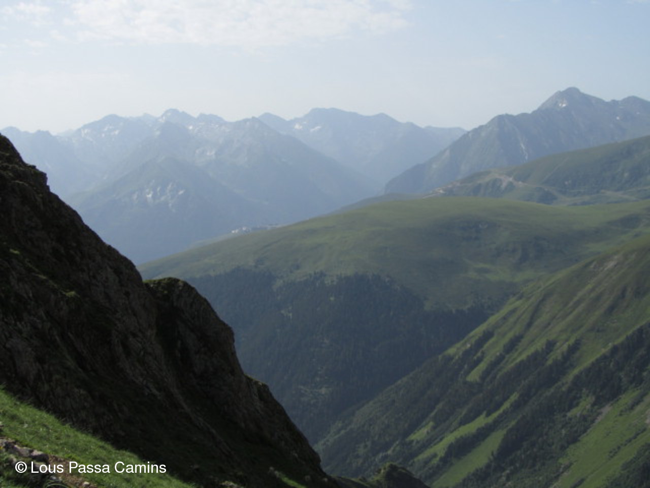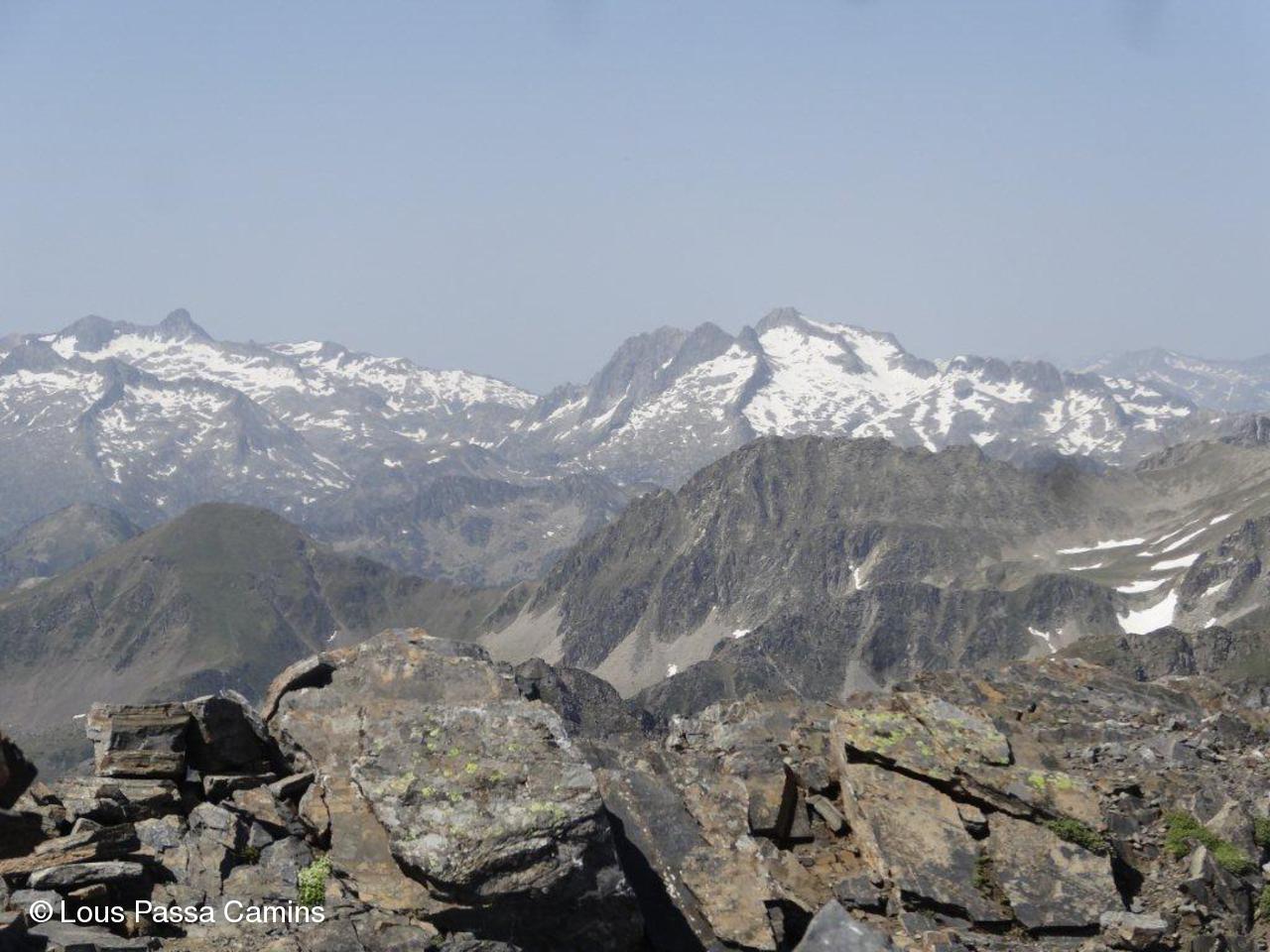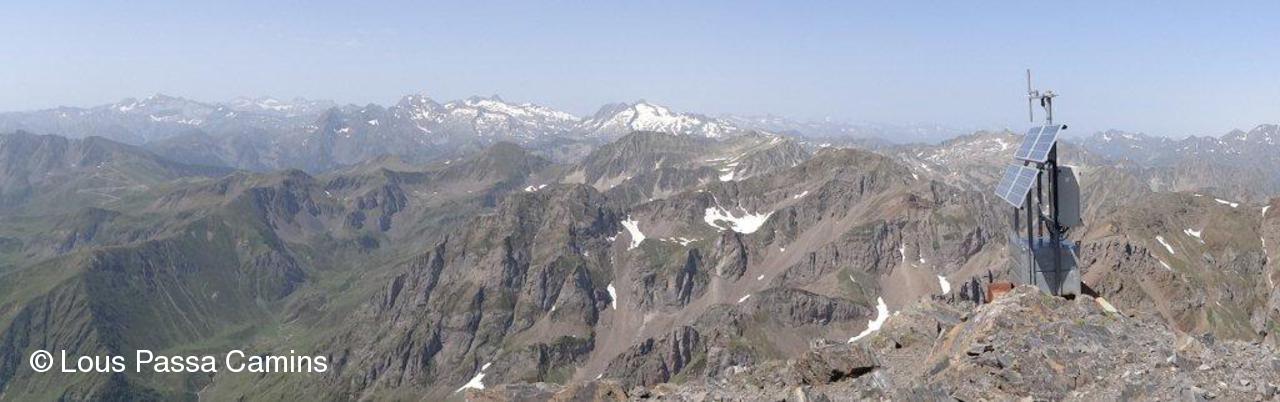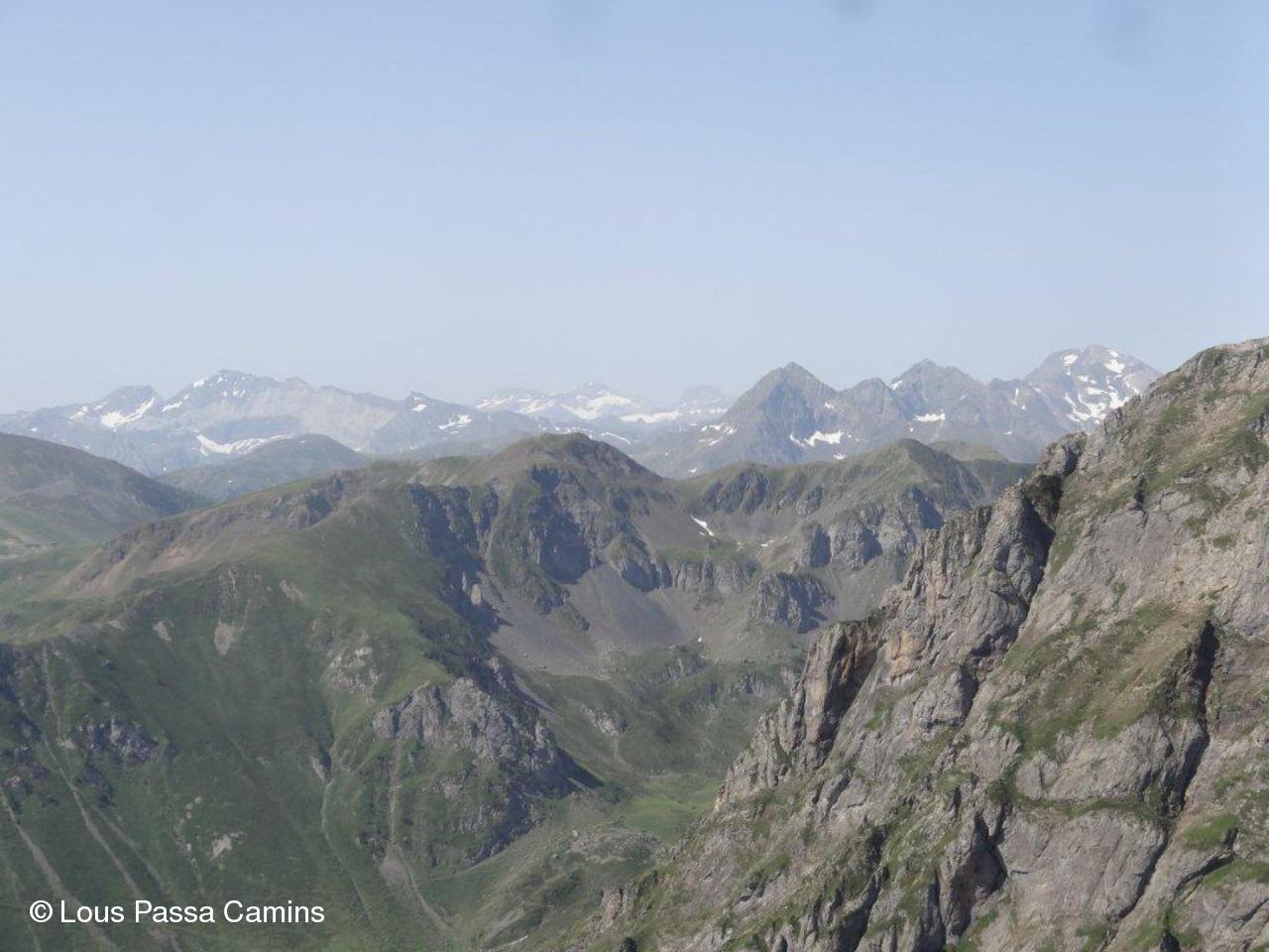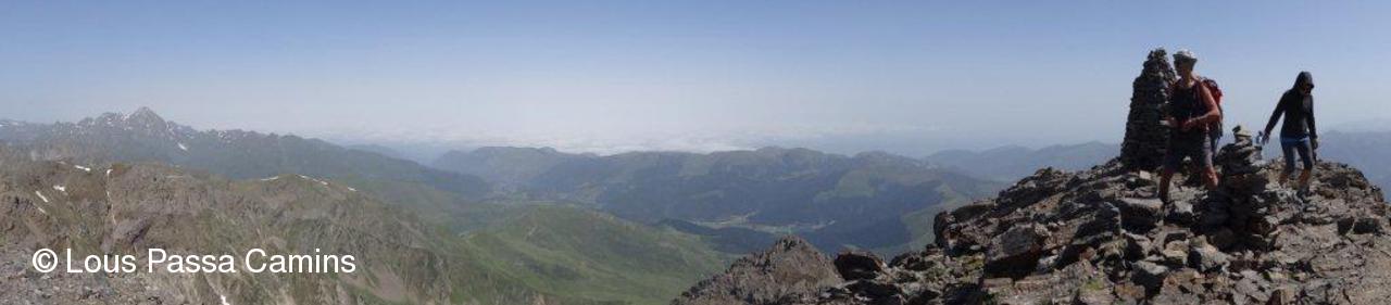 Vue panoramique vers l'ouest et le nord. La pointe à gauche est le Pic du Midi de Bigorre.