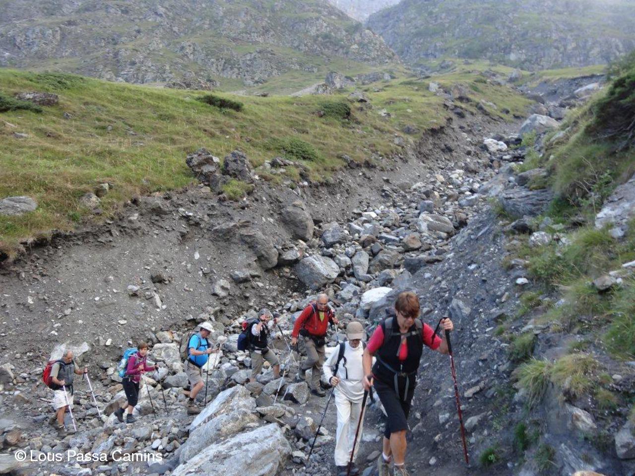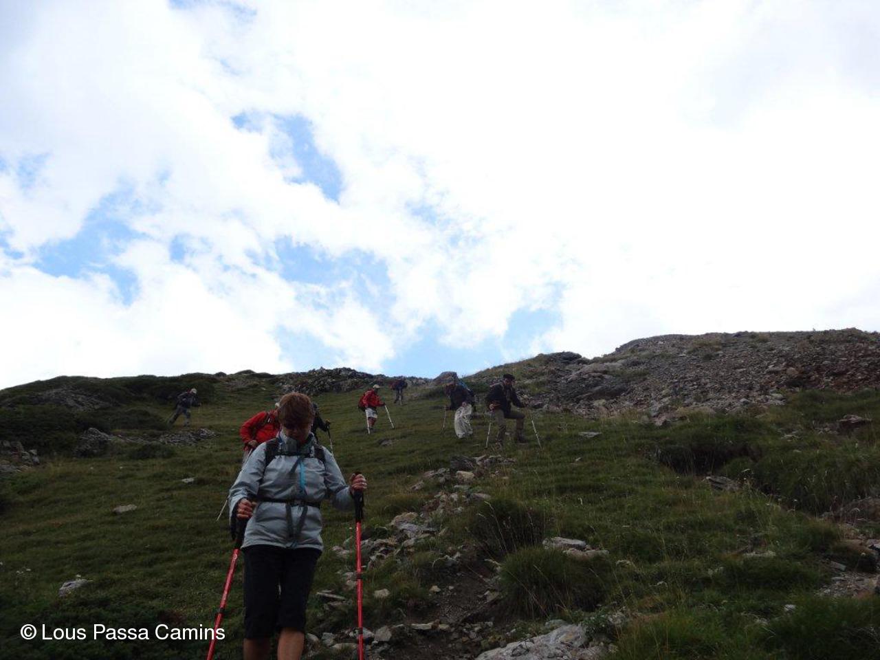 Le groupe aborde le 1er ressaut vers le col de La Sède après le "plateau" un peu marécageux des Aguilous.