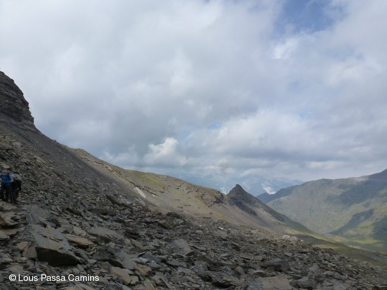 Peu avant le col de La Sède; au dernier plan: col de La Géla et pic (d'ici cela paraît bien pentu !)