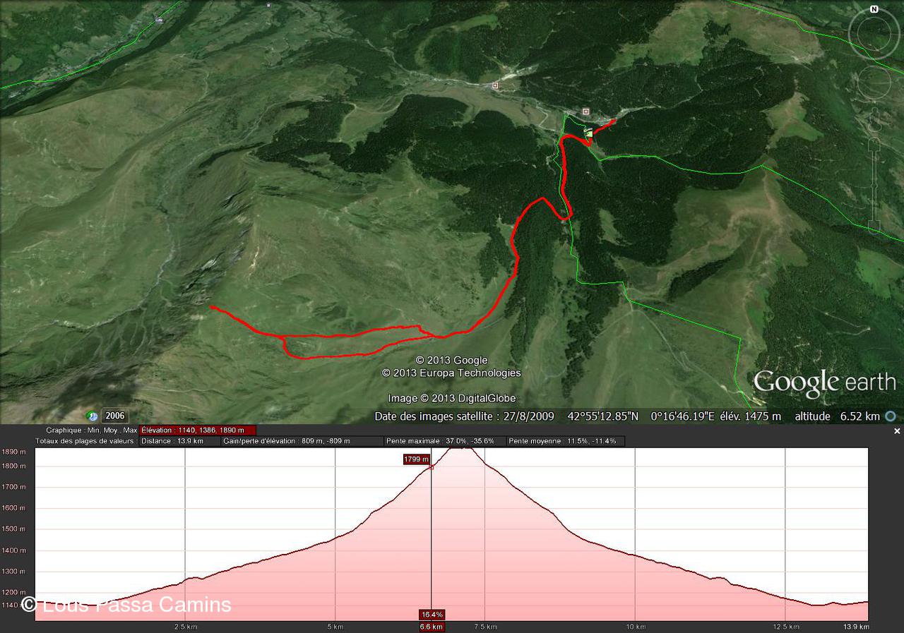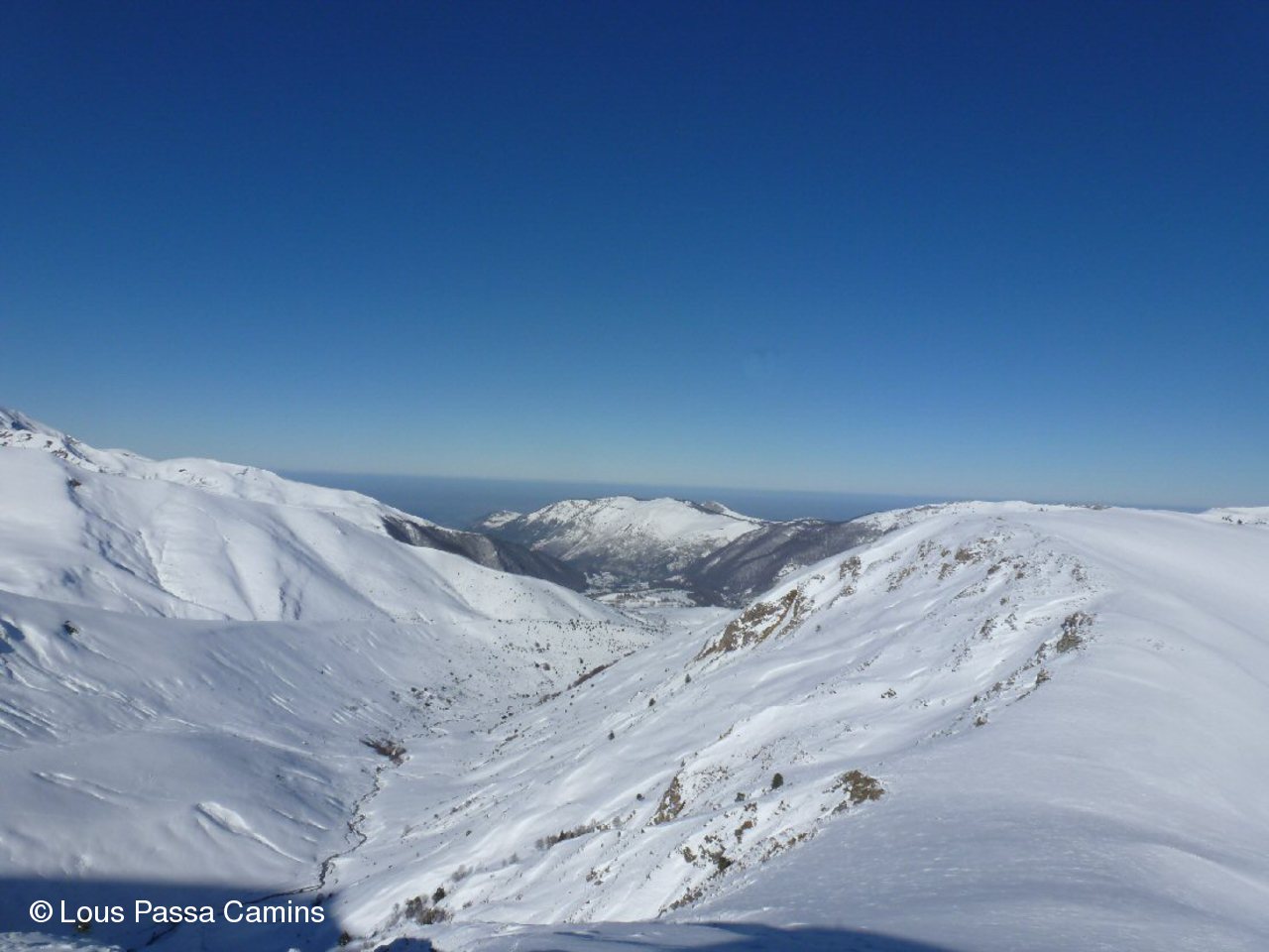 Vallon de la Gaoube vers Montarrouye et à D la crête vers le Pla des Bouhouèrès.