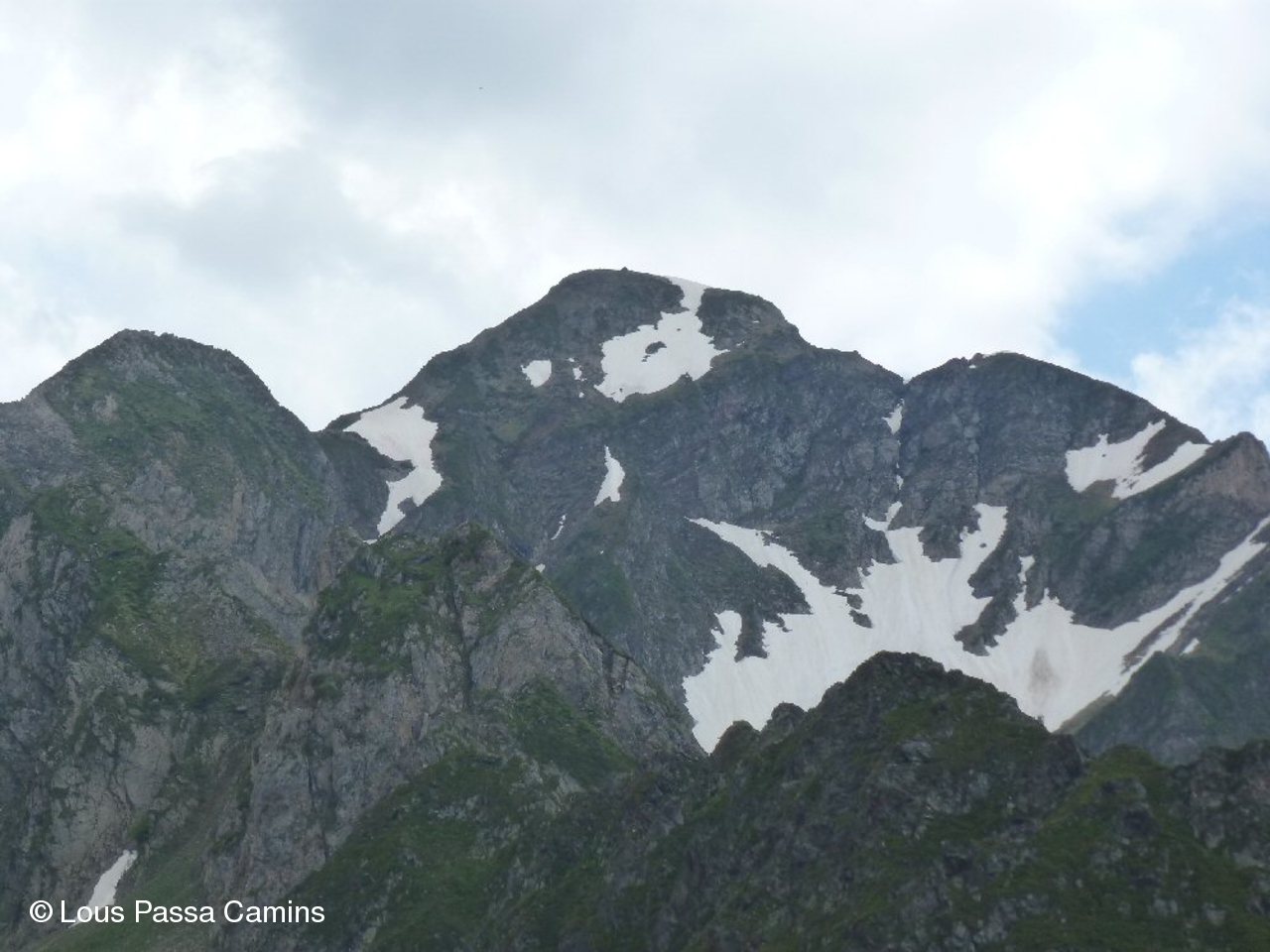 Le pic de Léviste; la "langue de neige" correspond à la corniche vue depuis le "cirque".