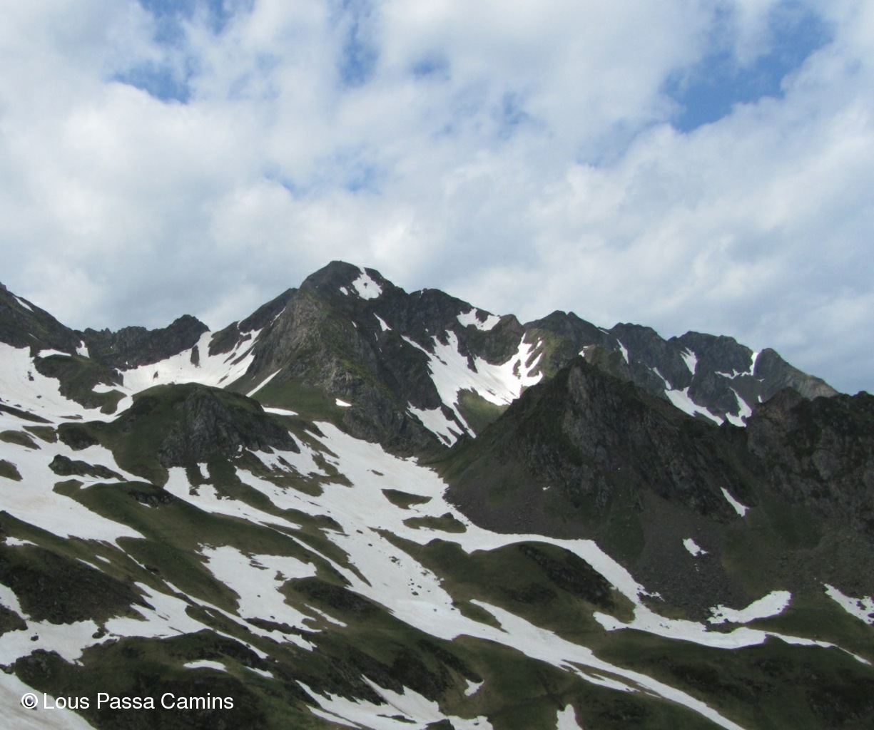La pyramide au dernier plan = Soum Arrouy; il faut aller dans le vallon, au pied, vers la D.