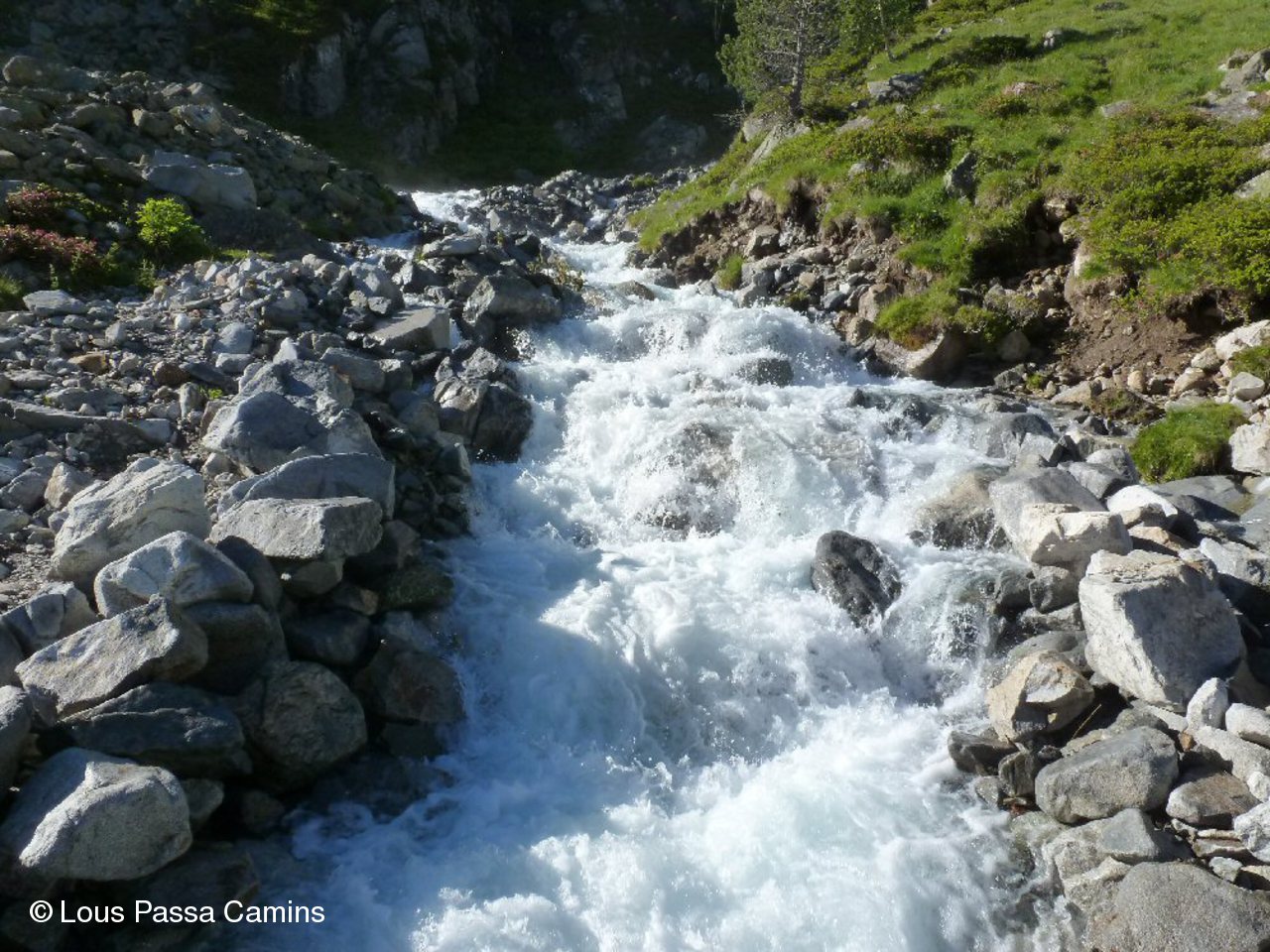 Sous la passerelle, le torrent Dets Coubous est furieux (probable lâcher d'eau, au retour c'était plus calme !)
