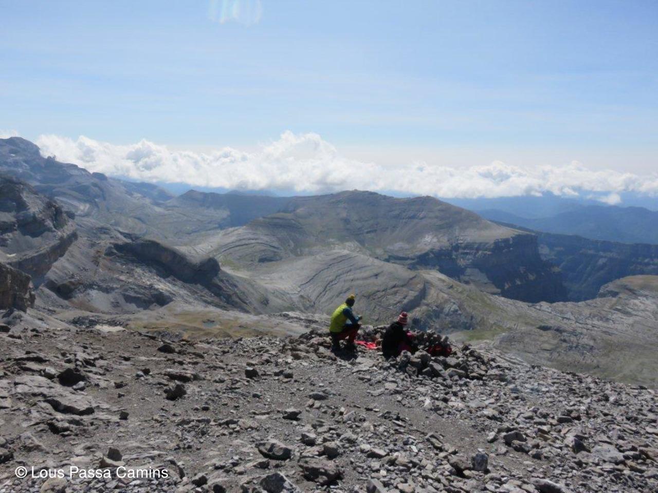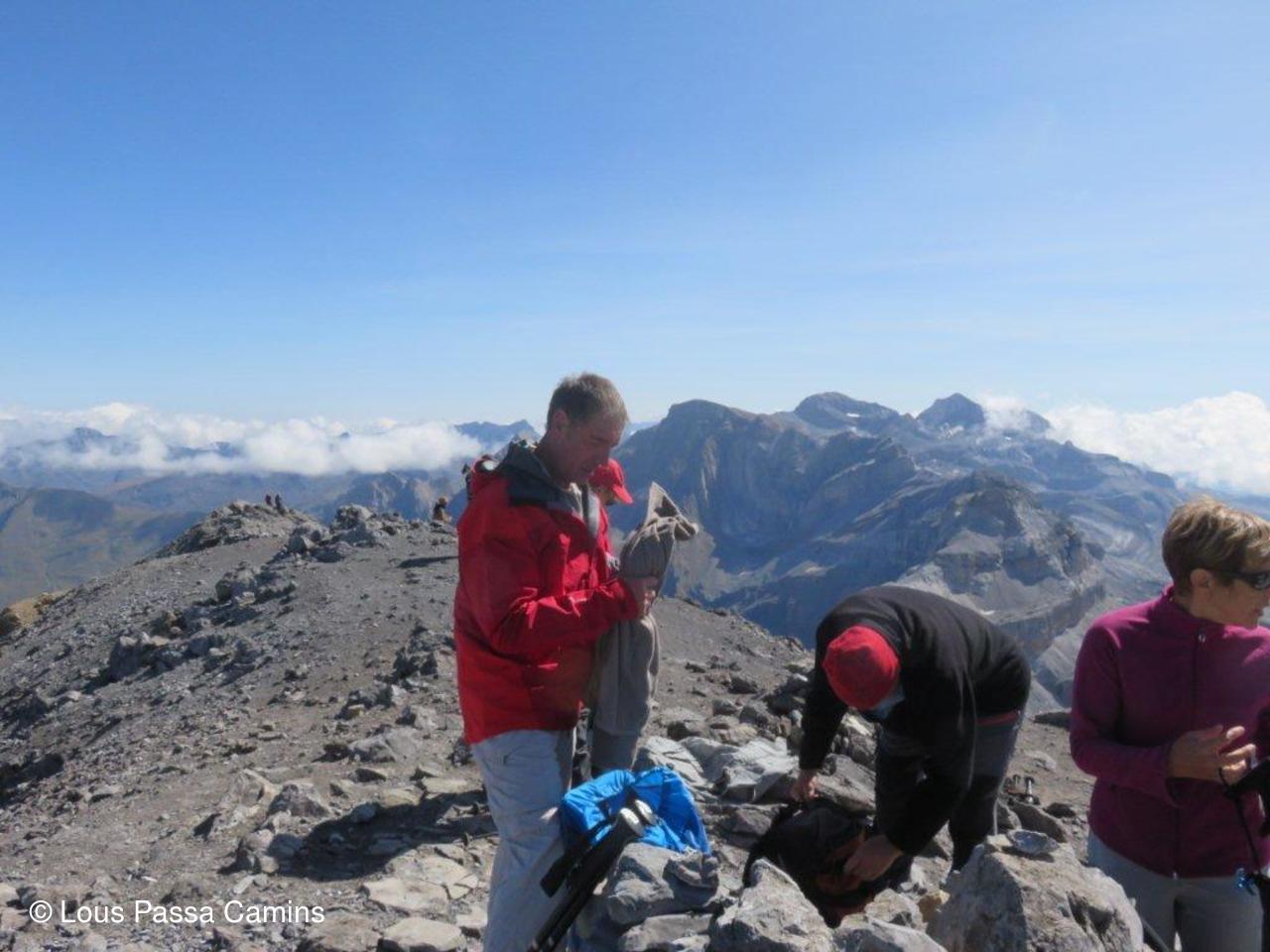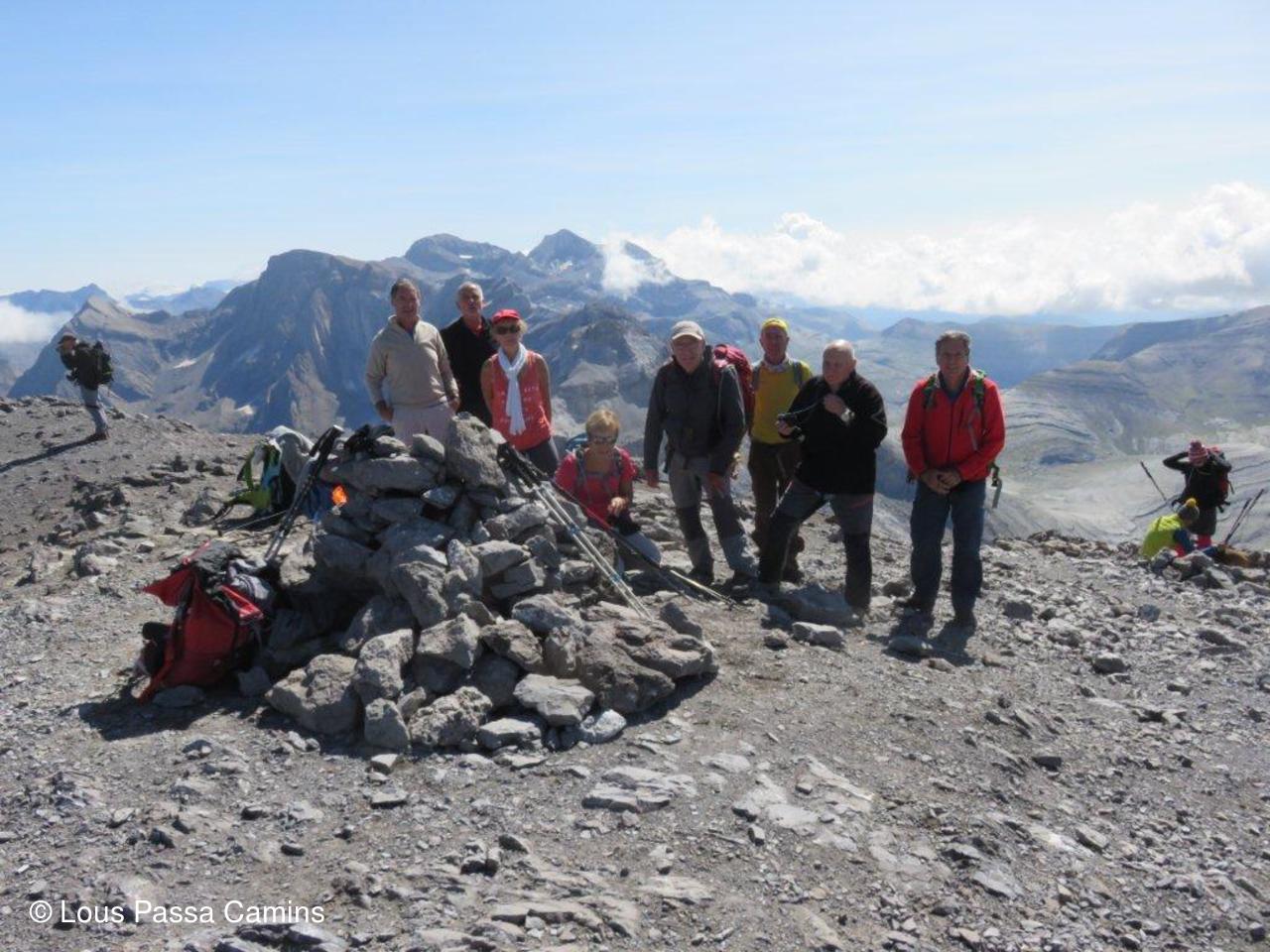 Le G2 du jour au sommet devant le Monte Perdido (au-dessus des 2 demoiselles du groupe).