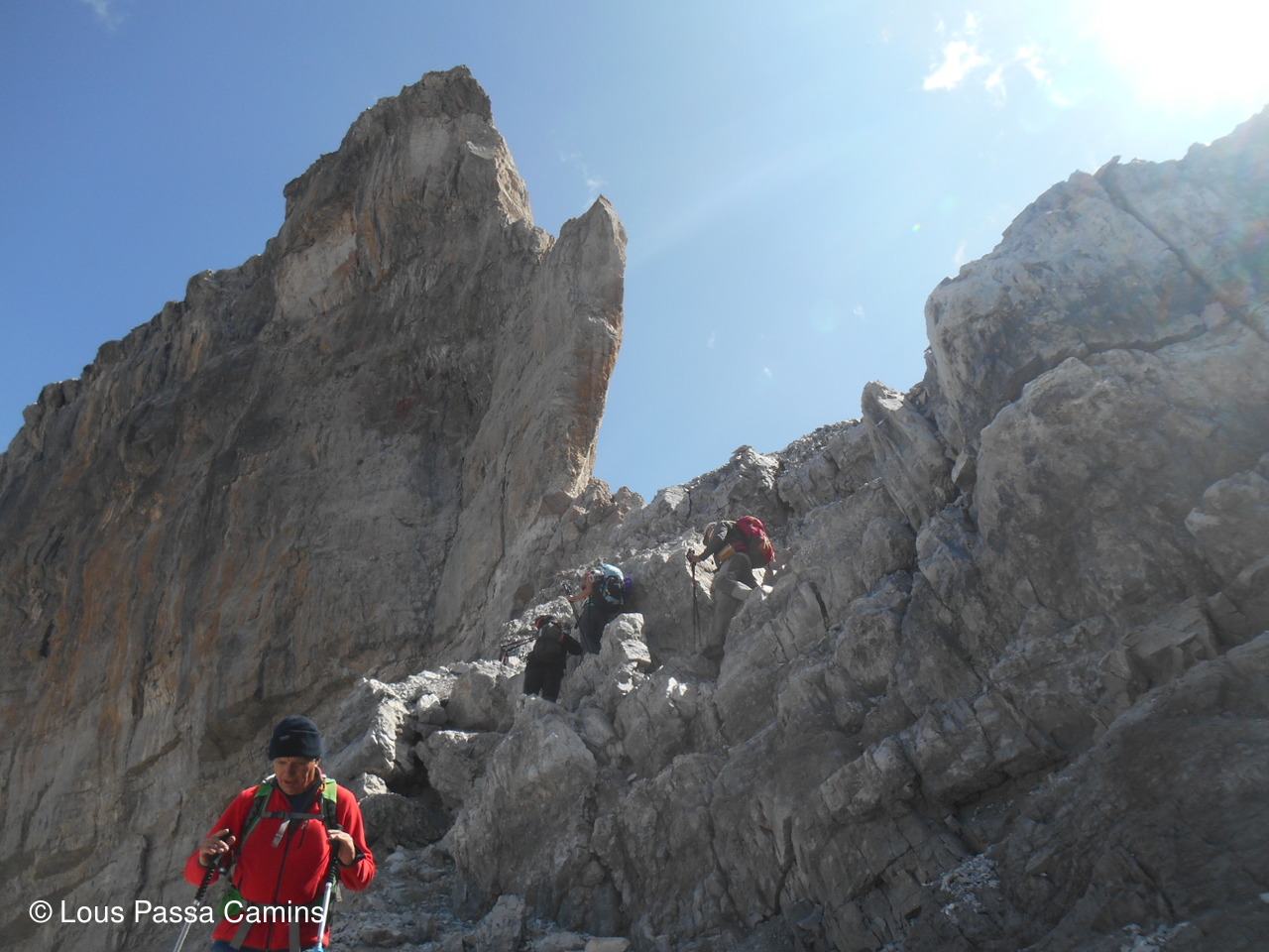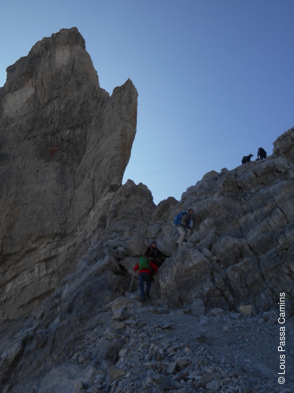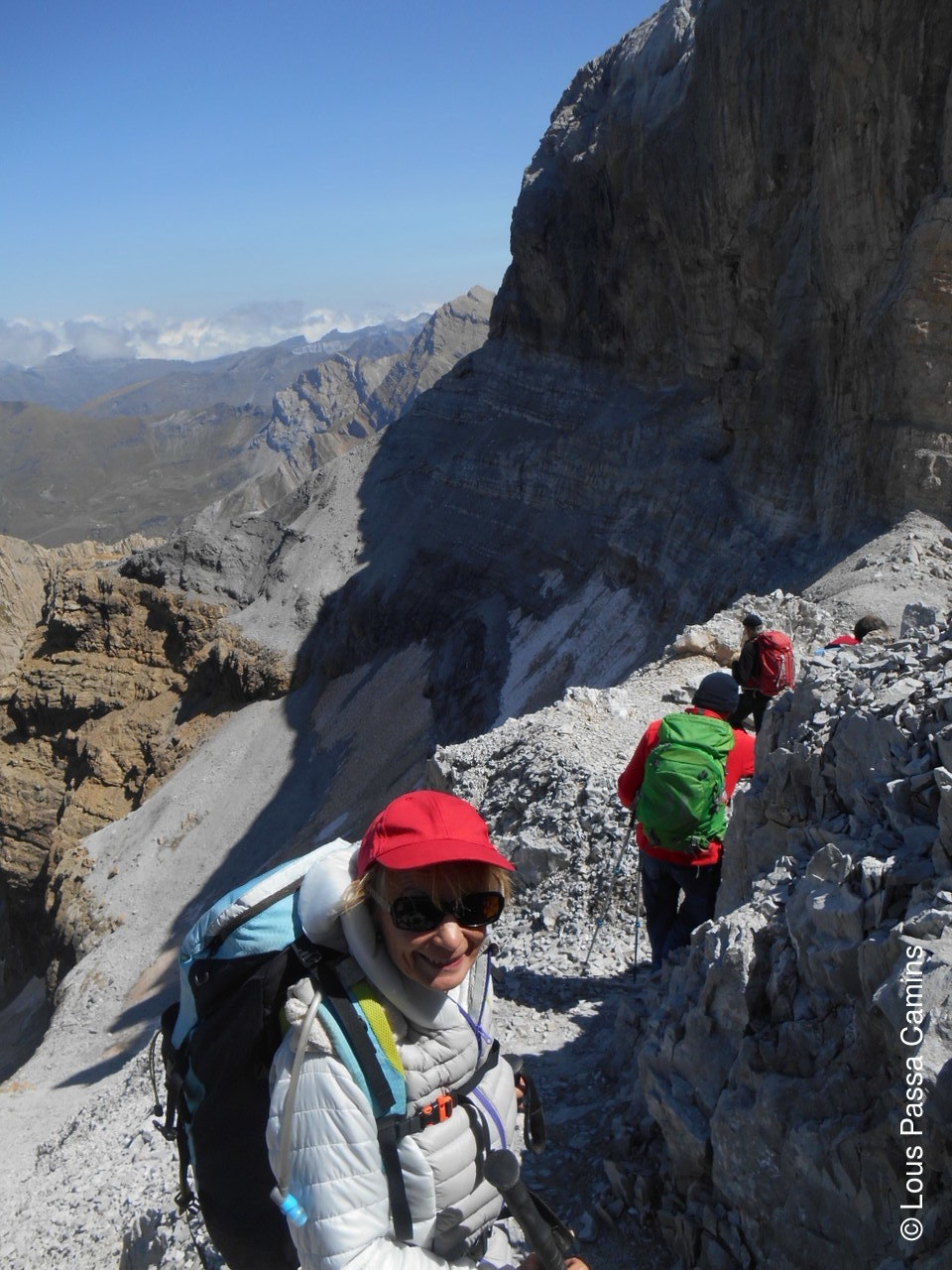 Le G2 du jour au sommet devant le Monte Perdido (au-dessus des 2 demoiselles du groupe).