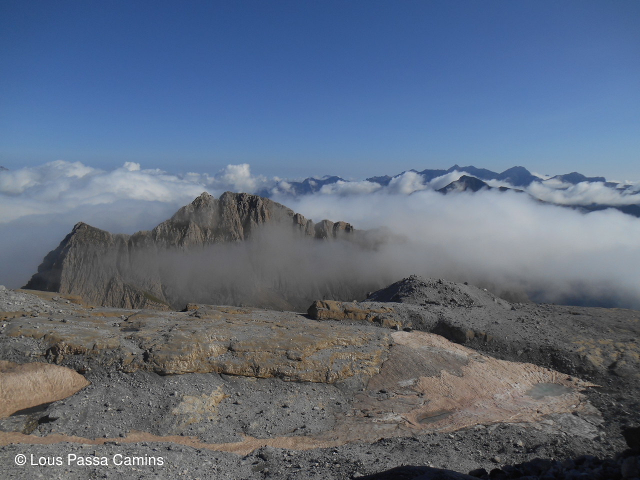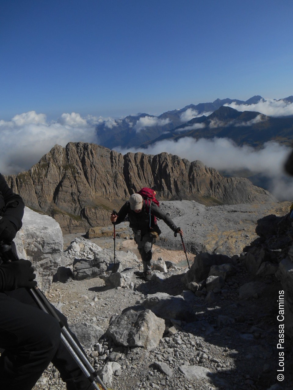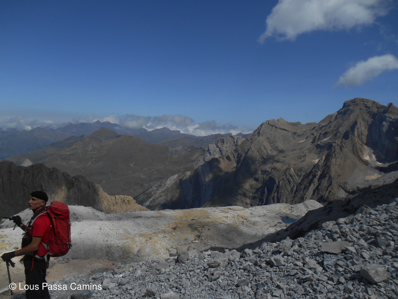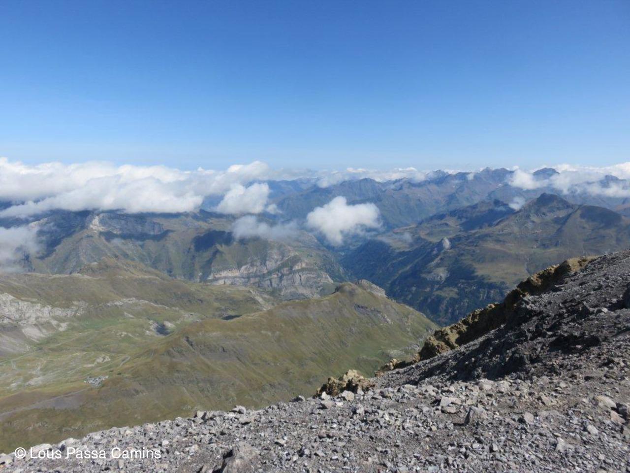 au cairn sommital avec le Vignemale à gauche qui apparaît.