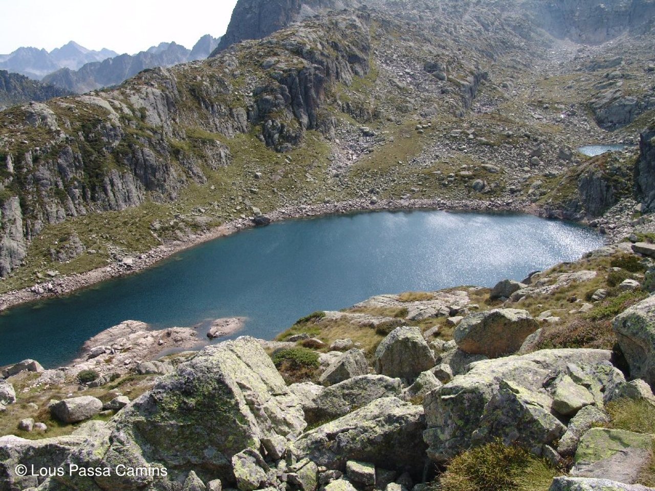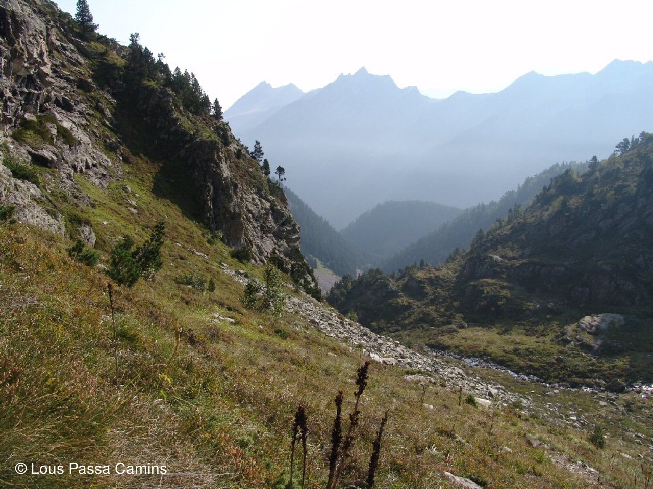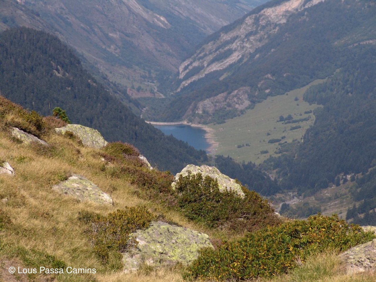 Vallon de "Tramesaygues" avec à G "Le Pourgadou", à D "Piques de l'Arriougrand" et les lacs de Lassiédouat