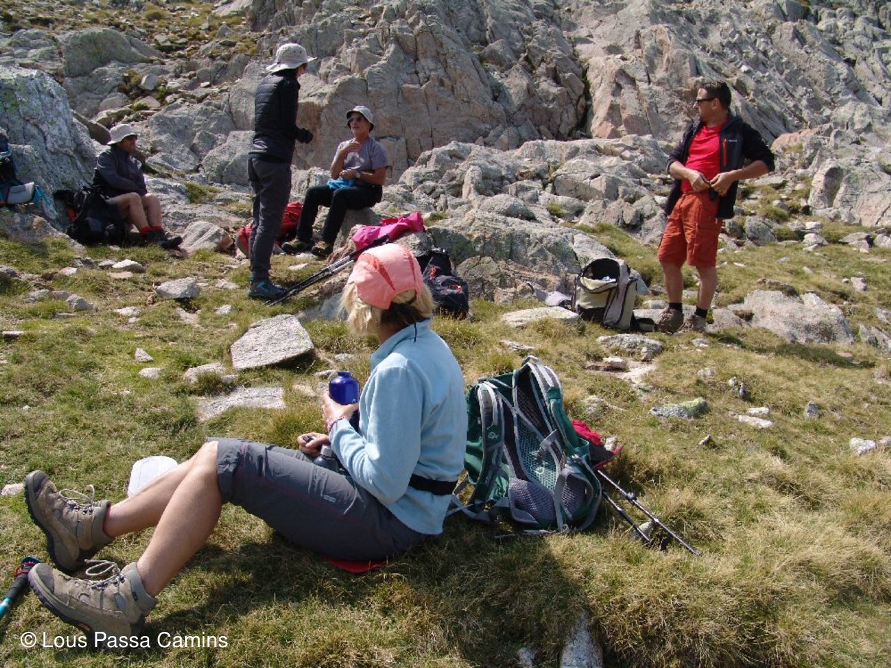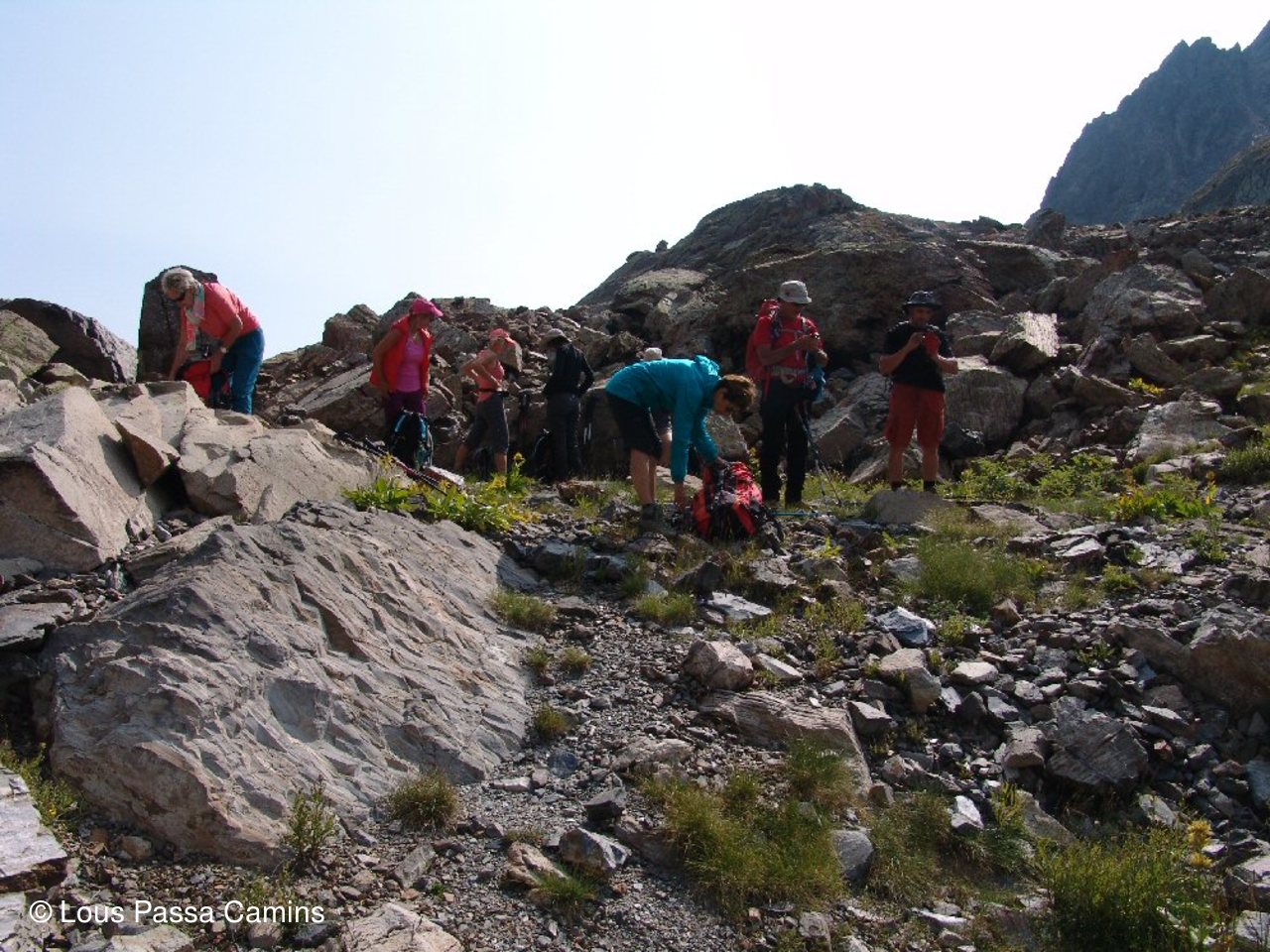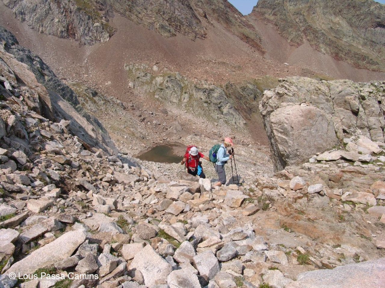 Presque en haut du col d'Hospitalet pour CJ et JD; derrière eux petite "flaque" en coeur! Au dessus "col des Loups"