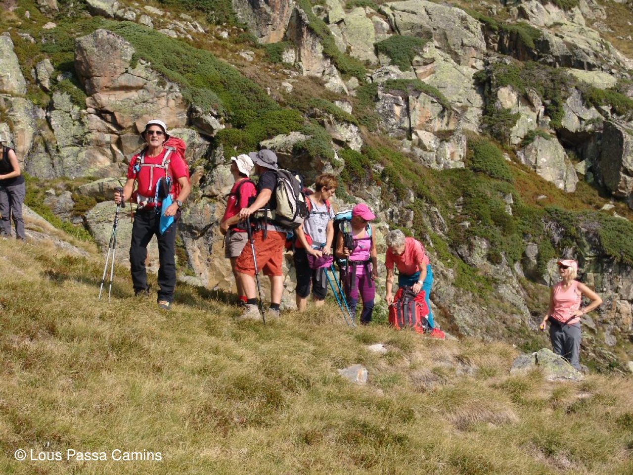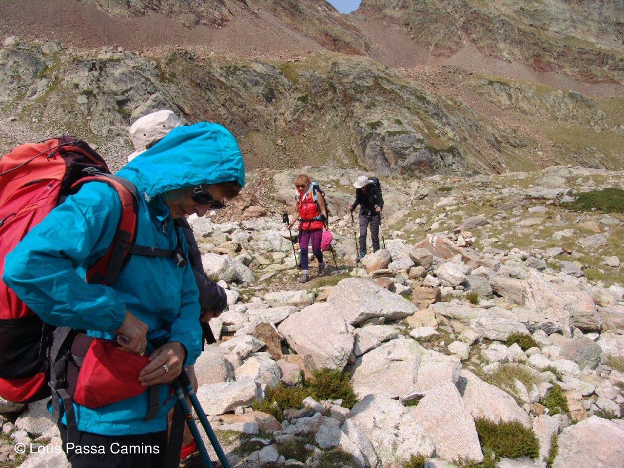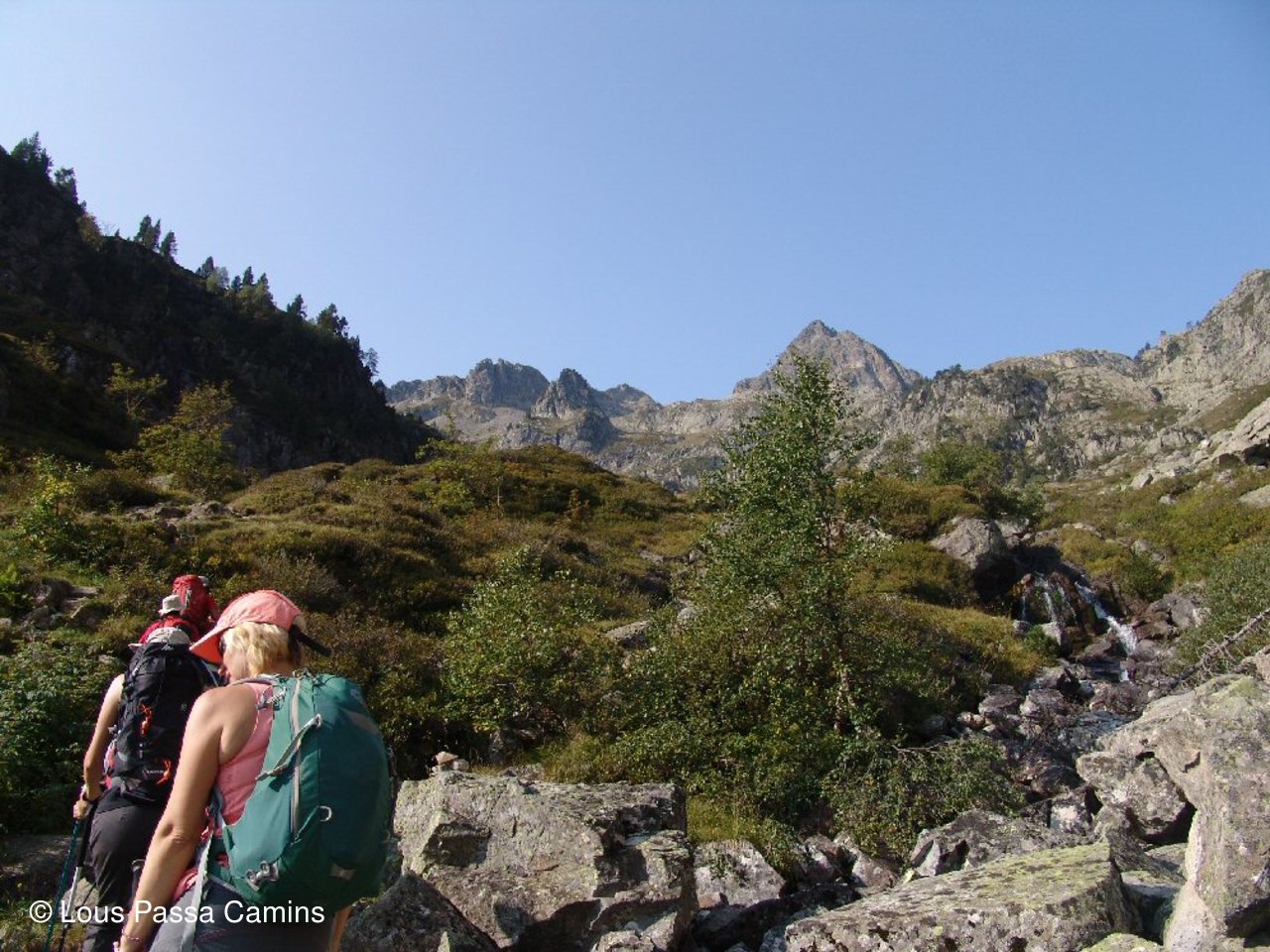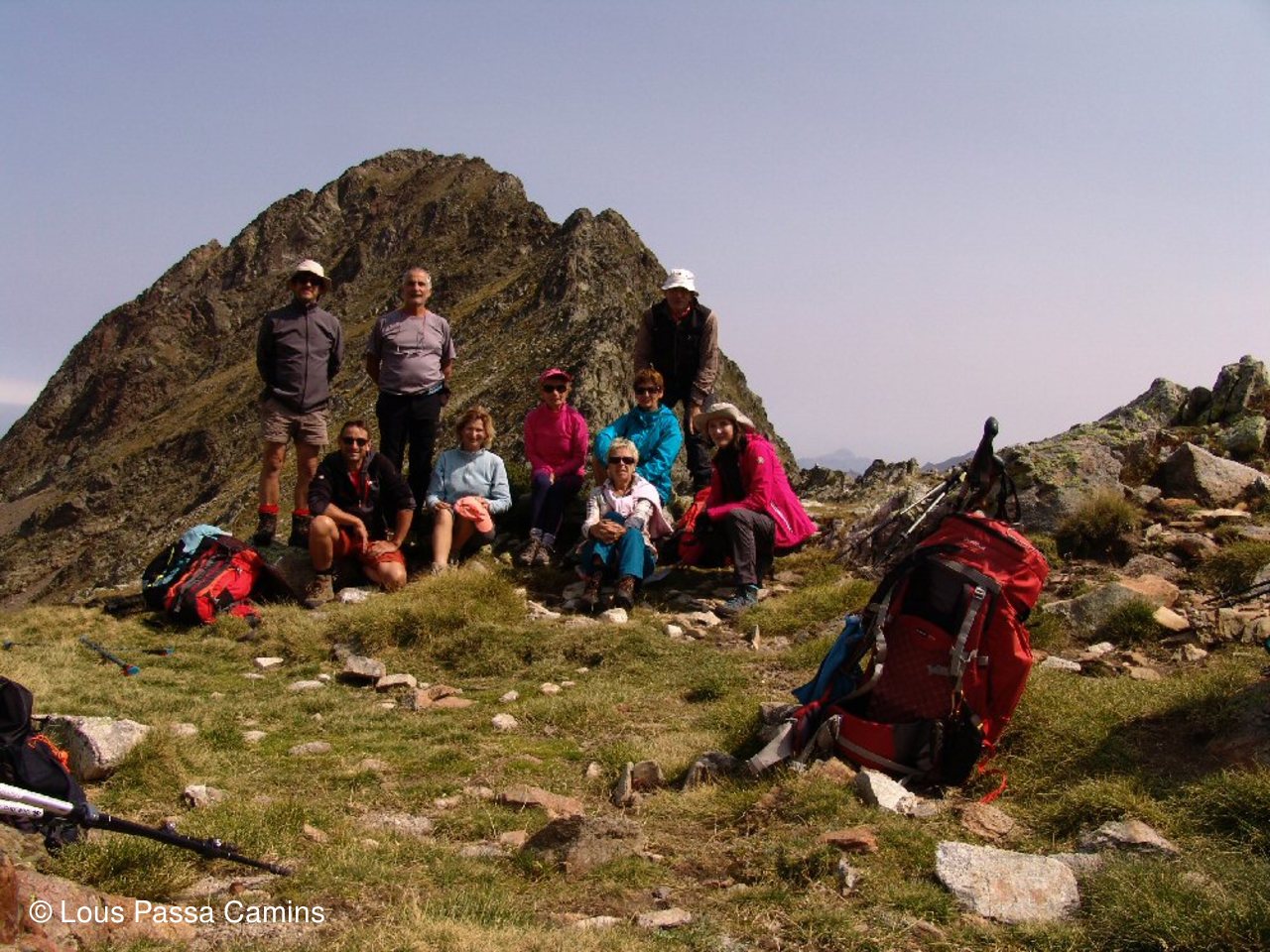 Presque en haut du col d'Hospitalet pour CJ et JD; derrière eux petite "flaque" en coeur! Au dessus "col des Loups"