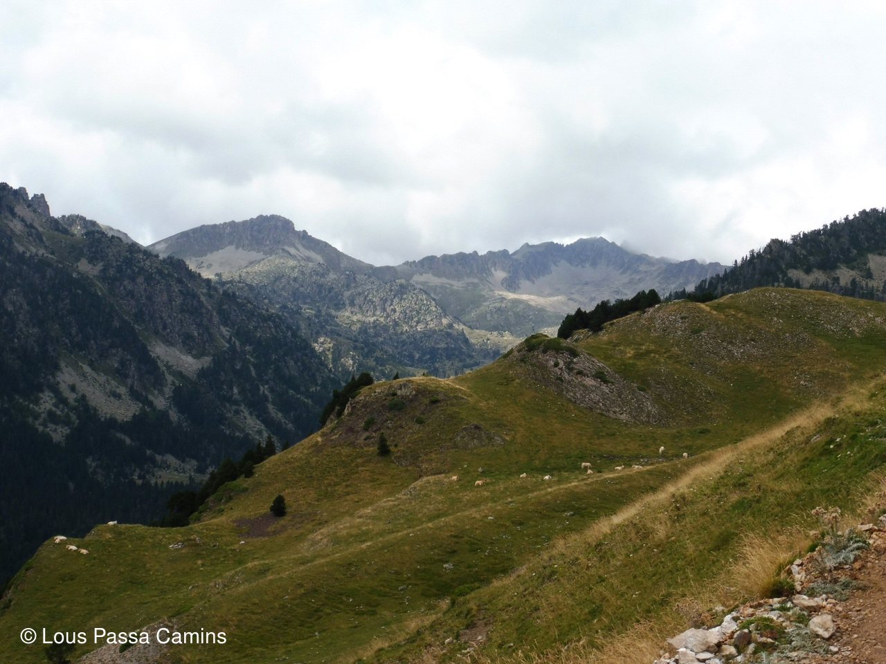 à G le plus haut sommet du jour = Le Pichaley; point bas = col de Jetas, puis le Montarrouyet et le pic de Bastan d'Aulon