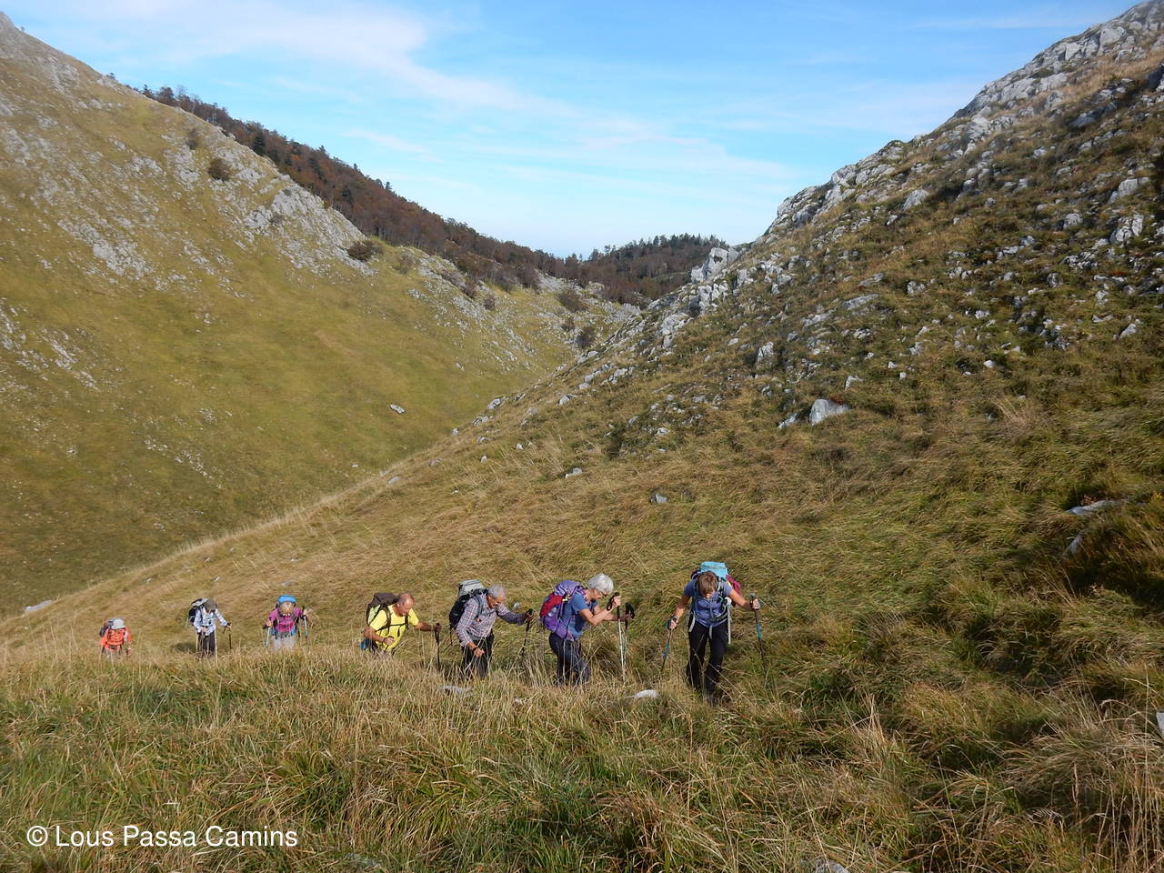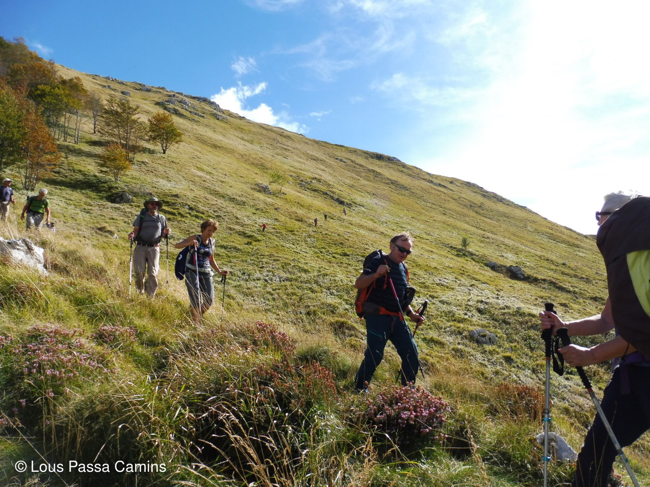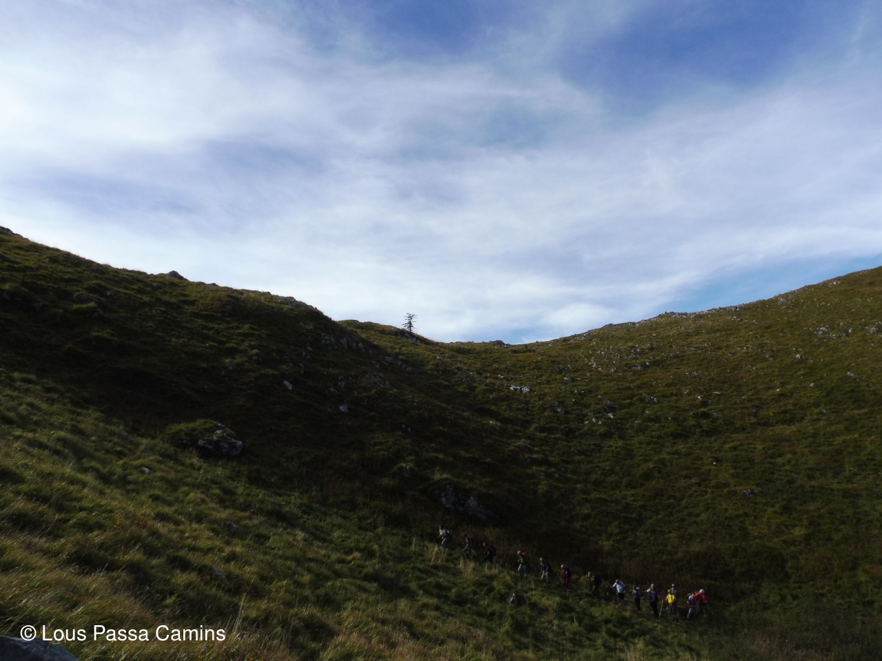 Dans la descente vers le "Pas de l'Abérou", direct dans la pente herbeuse, pour éviter le grand détour vers le col de Serrisse