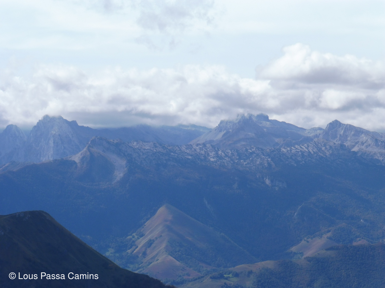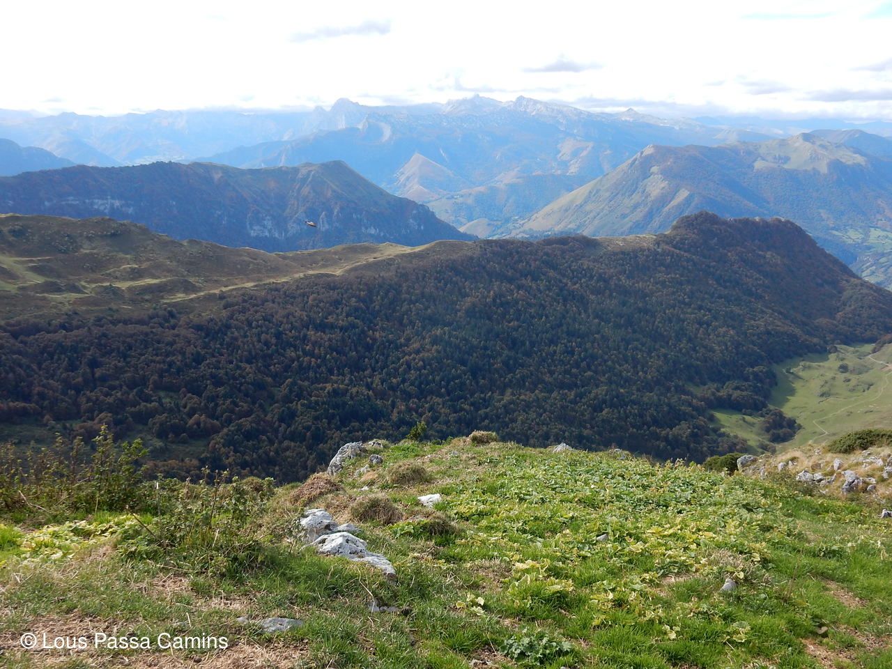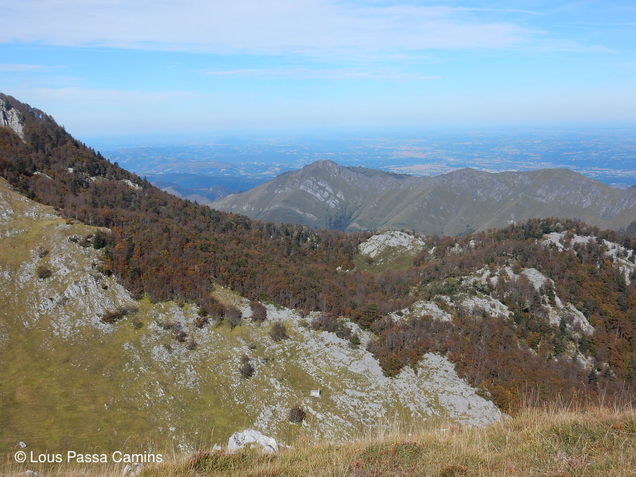 Le plateau du Bénou depuis le sommet de l'Ourlène; à G, dernier plan, un peu plus clair: TARBES