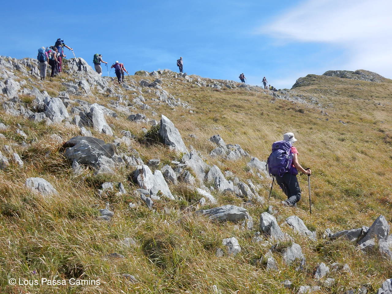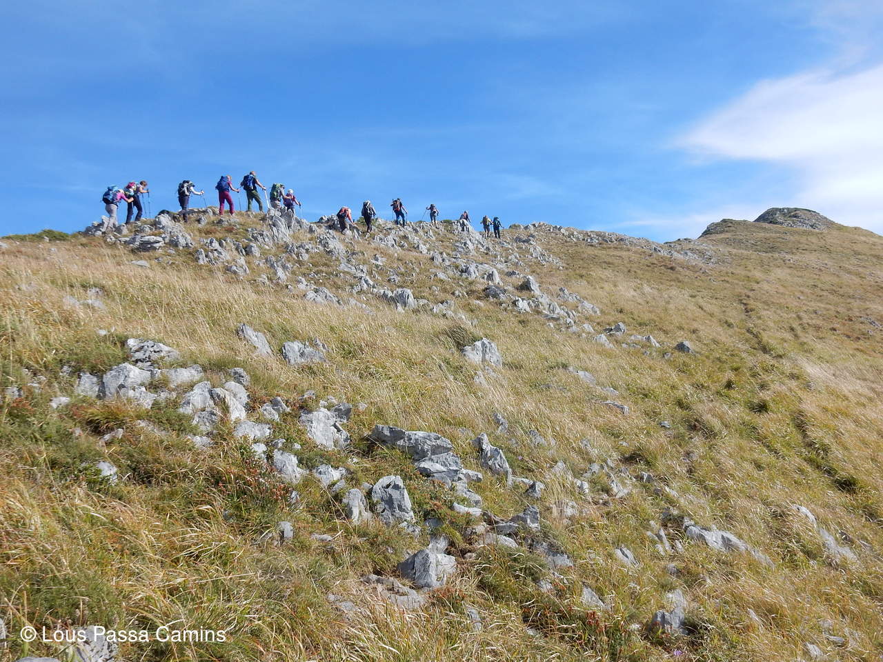la fin de la montée vers le sommet de l'Ourlène pour une partie du groupe...