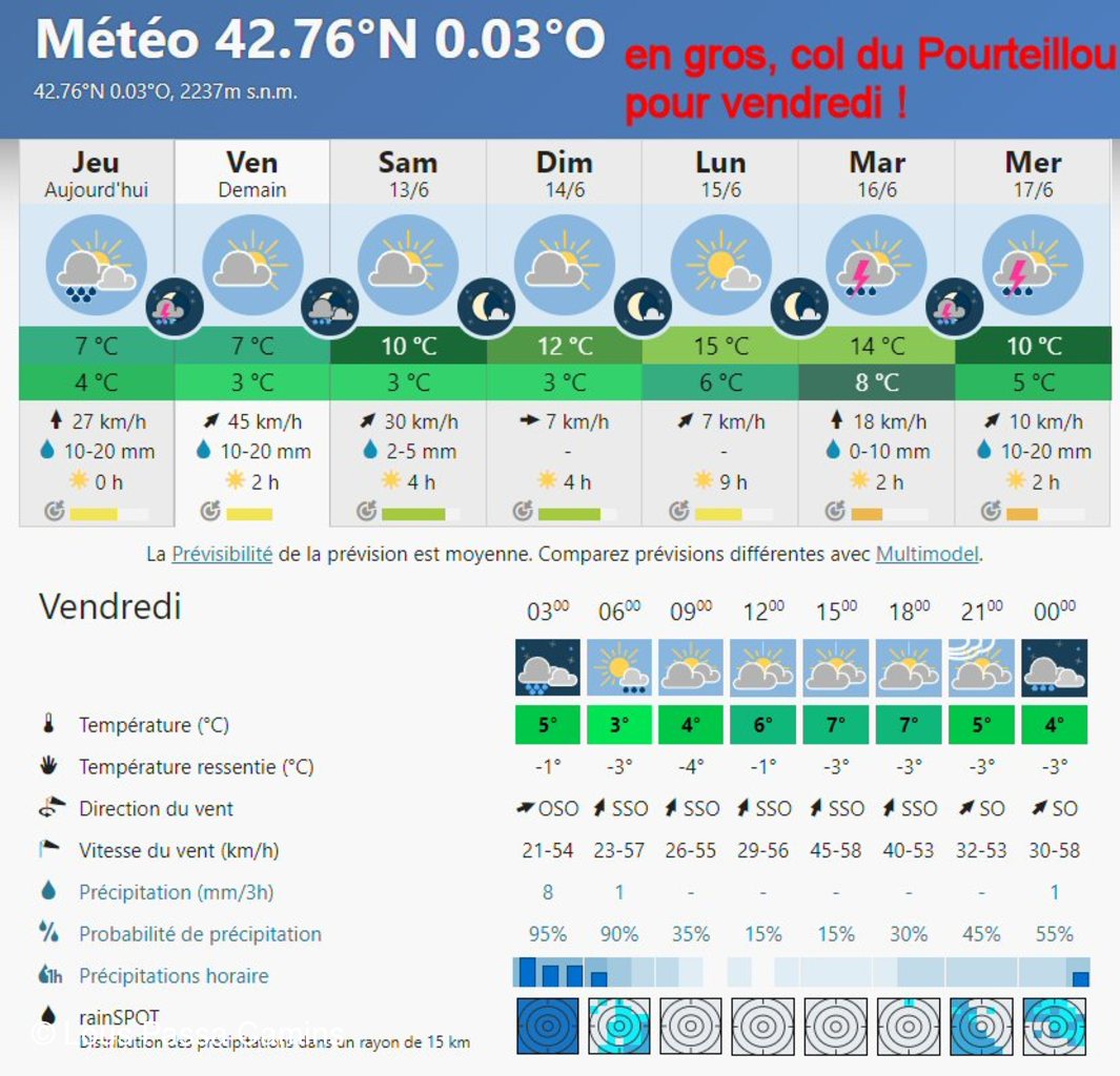 La "salle à manger" avait semblé abritée en début de PN, puis un peu ventée sur la fin, avec même un peu de grésil (2220m !)