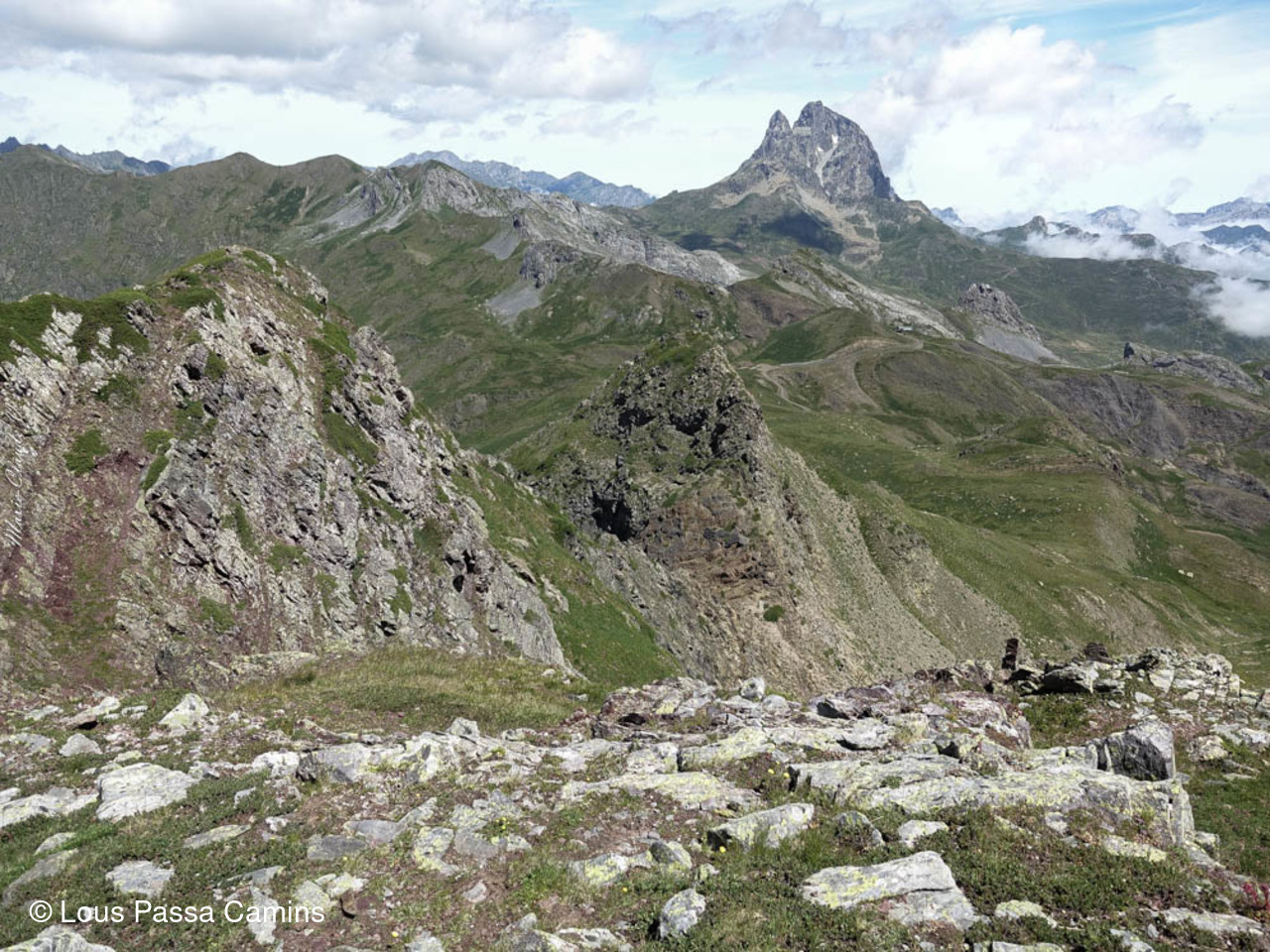 Panorama depuis la Punta, vers l'O: de D à G = le Pic d'Anayet, le Vertice d'Anayet tout rouge...